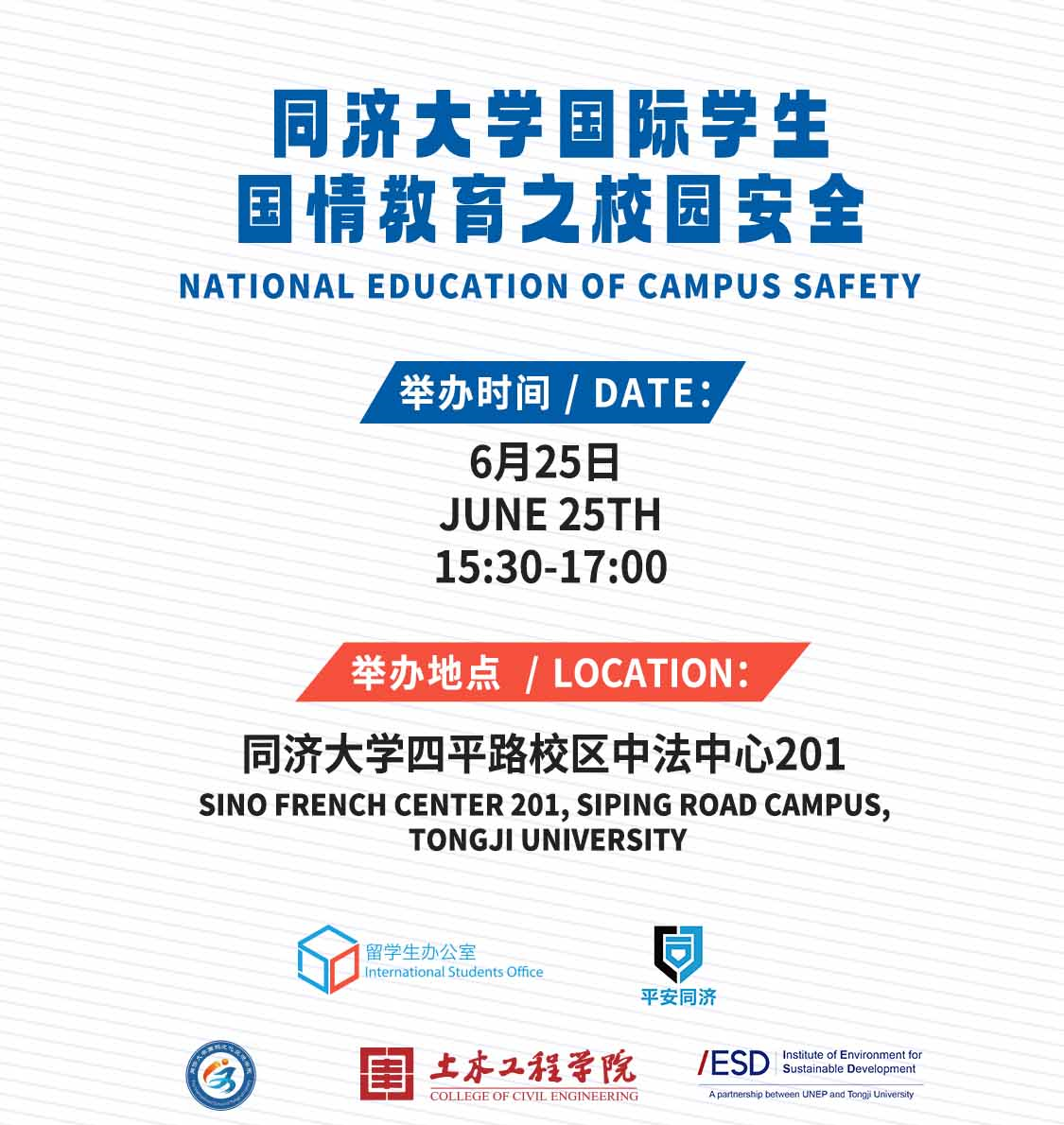 同济大学于6月25日举办了一场"国际学生国情教育之校园安全讲座"的活动,旨在加强国际学生对中国法律法规和校园安全的全面了解与重视。该活动由留学生办公室与校保卫处联合主办,吸引了100多名来自土木工程学院、国际文化交流学院、环境科学与工程学院以及医学院等院系的国际学生参与。