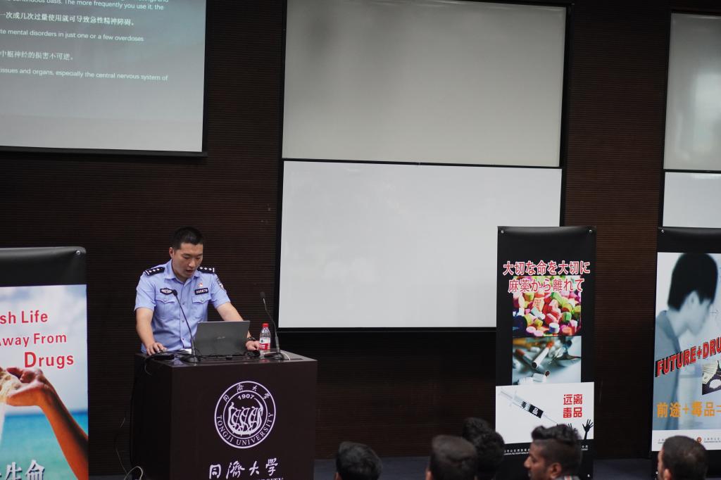 讲座主要围绕校园的禁毒宣传。活动特邀了上海市公安局文保分局的任警官为国际学生普及禁毒知识。通过近期发生的留学生吸毒案例以及生动有趣的视频,任警官生动地介绍了中国法律对各类毒品的定义以及吸食毒品所承担的法律责任。同时,他还给出了十条建议,旨在帮助国际学生避免接触和吸食毒品。这些内容受到了国际学生的一致好评。