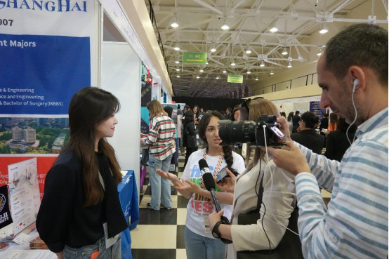 此次亚美尼亚HSK留学就业展有5000多名亚美尼亚HSK考生、中文学习者、家长及社会各界人士前来参展。我校国际学生招生老师对学生和家长们关心的各类问题进行了详细解答。展会上,我校留学生办公室老师接受了亚美尼亚AB NEWS的采访,通过媒体介绍了同济大学的基本情况,还有亚美尼亚校友来到展台前和老师亲切交流,感谢母校的培养,并表示乐意为同济大学在当地的宣传尽自己的一份力。