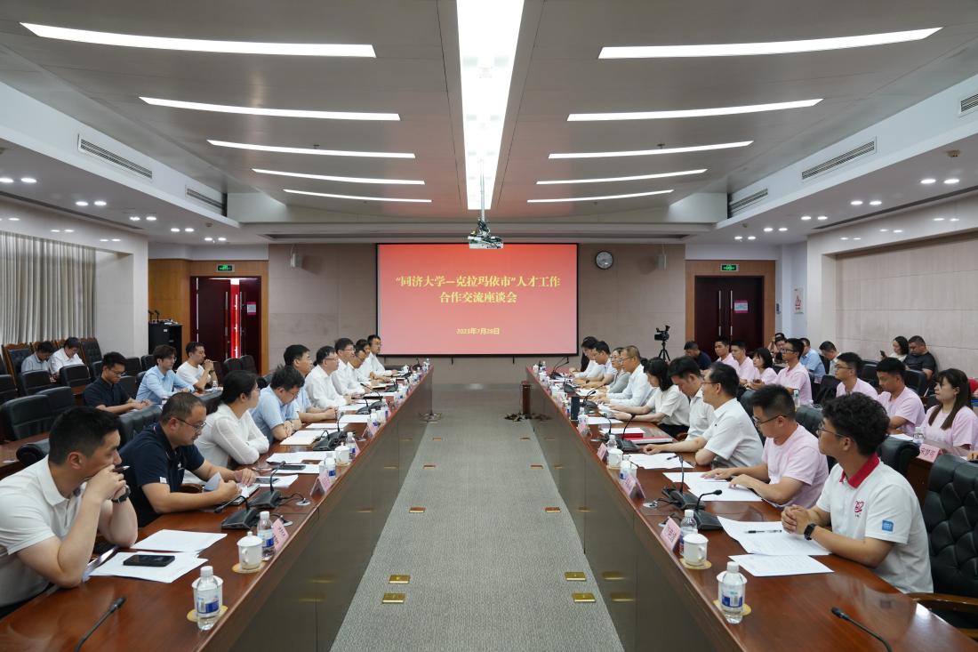 28日下午,“同济大学—克拉玛依市”人才工作合作交流座谈会在克拉玛依市举行,双方就人才培养、医疗援疆、校地合作工作进行了深入交流。方守恩,克拉玛依市委副书记、政法委书记王冰,彭震伟,吴利瑞出席会议。克拉玛依市委常委、组织部部长陈科萍主持会议。
