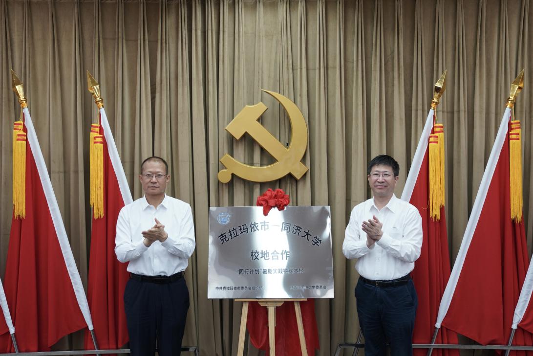 会上,同济大学2023年“同行计划”赴克拉玛依实践锻炼的学生代表、同济大学校友代表、同济大学附属同济医院援疆医生代表和同济大学西部计划志愿者分别进行了表态发言。王冰和彭震伟共同为“同行计划”暑期实践锻炼基地揭牌。