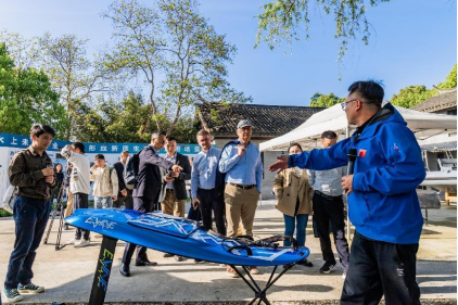 会后,参会人员考察了上海美帆低碳培训营地、示范区重点项目等应用场景,其中上海美帆与德国拓力德公司合作推出的新能源水翼板“酷拓-SYC”备受关注,该产品通过3D建模设计,相较于传统水翼板节能80%。同时,美帆与同济大学长三角可持续发展研究院及美国索尼克等机构合作,开发了一种新型船舫供电系统,该系统结合光伏发电与储能技术,能够支持全天候不间断供电,并配备了全循环生态厕所,实现无需供排水管网、全程无废水排放、节水率超过90%,以及营养物回收利用、高效杀菌和消毒等功能。